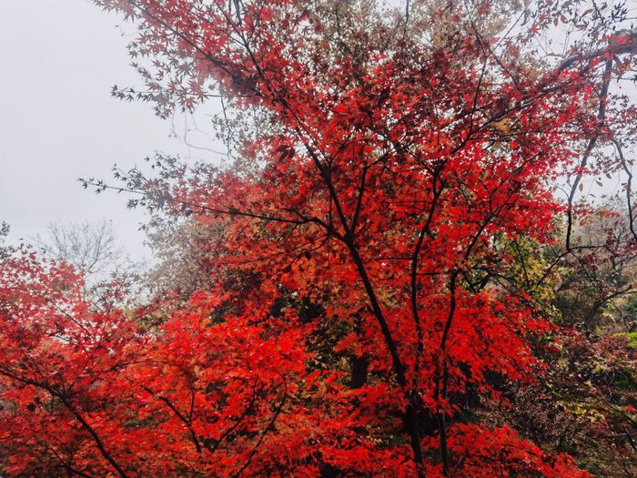 屹立山巅,眺望山间。忽见一片摇摇曳曳,若隐若现的枫叶林。沿着蜿蜒的山路,我慢悠悠地向那枫叶林走去。秋风拂过黯红的海洋,起了阵阵波澜,树冠的间隙里露出了似火的艳红,与萧瑟的山谷互相衬映,令我悠然神往。仰望着这从树梢射入的阳光,它好似下凡的天使,为我点亮了叶的光芒。阳光下的枫叶尽情地舞蹈着,叶面翻转,叶脉清晰可见,似蝶似风,似刻画人生的起起落落,一波三折。叶片好似被阳光镶上了金边,与火红的叶面一同渲染成了人间最美的风景。栖霞山不愧被人们称为“枫岭”,红枫如火。