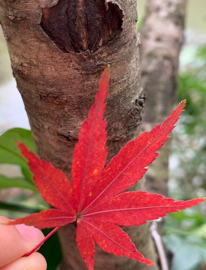 最终,我们手里拿了一片落叶。因为我们觉得,落叶才秋天最美的景物,更能象征秋天。